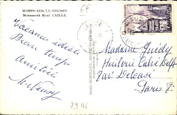 Ak Mauzé auf dem Mignon Deux Sèvres, Rene Caille Monument