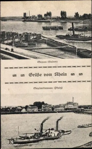Ak Maximiliansau Wörth am Rhein, Maxau in Baden, Grüße vom Rhein, Dampfer