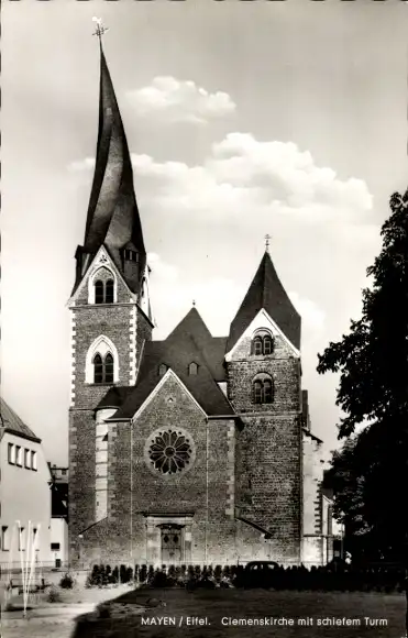 Ak Mayen in der Eifel, Clemenskirche, schiefer Turm