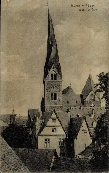 Ak Mayen in der Eifel, Kirche, Schiefer Turm