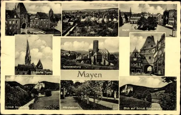 Ak Mayen in der Eifel, Stadt, Schloss, Schiefer Turm, Brückentor, Märchenhort, Genovevaburg