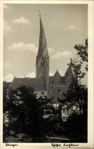 Ak Mayen in der Eifel, schiefer Kirchturm