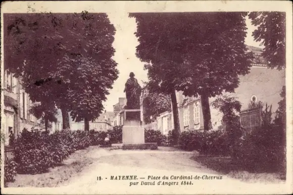 Ak Mayenne, Place du Cardinal de Chevrux von David d'Angers