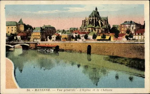 Ak Mayenne commune, Vue generale, L'Eglise, Le Chateau