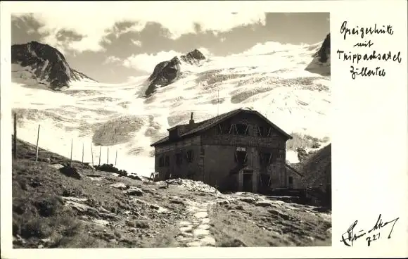 Ak Mayrhofen im Zillertal Tirol, Greizer Hütte, Trippachsattel