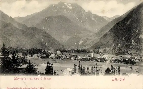 Ak Mayrhofen im Zillertal Tirol, Panorama mit Grünberg