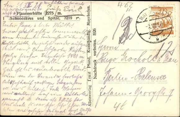 Ak Mayrhofen im Zillertal Tirol, Plauenerhütte