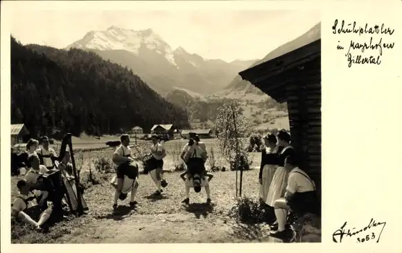 Ak Mayrhofen im Zillertal Tirol, Schuhplattler, Menschen in Tracht