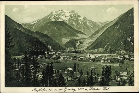 Ak Mayrhofen im Zillertal Tirol, Totalansicht mit Grünberg