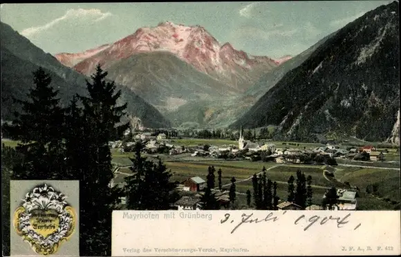 Ak Mayrhofen in Tirol, Panorama mit Grünberg