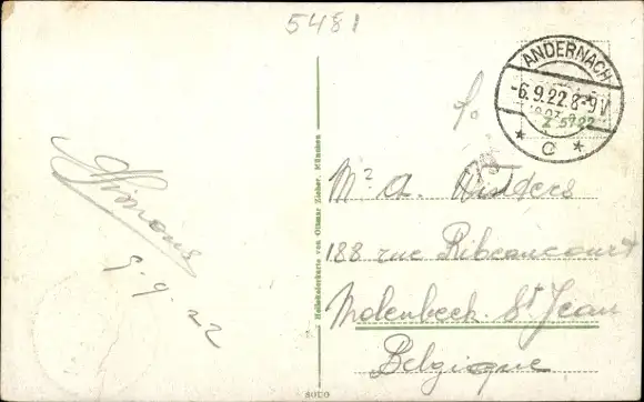 Zustand, siehe Scan, gelaufen, 1922 - ca 14 cm X 9 cm