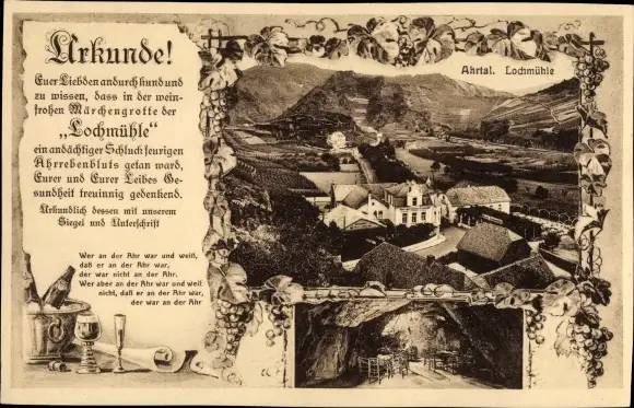 Ak Mayschoß an der Ahr, Lochmühle, Märchengrotte, Ahrtal, Urkunde