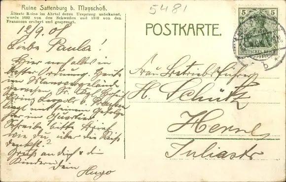 Zustand, siehe Scan, gelaufen, 1908 - ca 14 cm X 9 cm