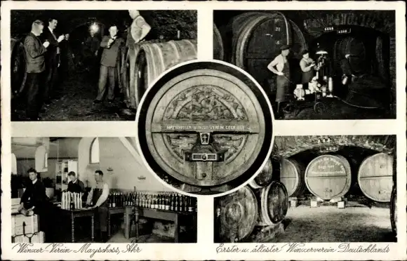 Ak Mayschoß an der Ahr, Winzerverein, Verkostung des Weines, Fässer