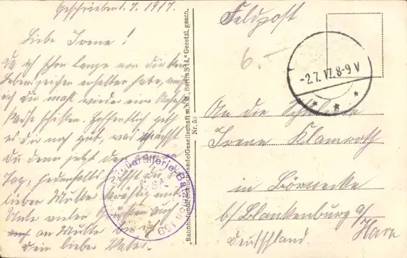Zustand, siehe Scan, gelaufen, 1917 - ca 14 cm X 9 cm