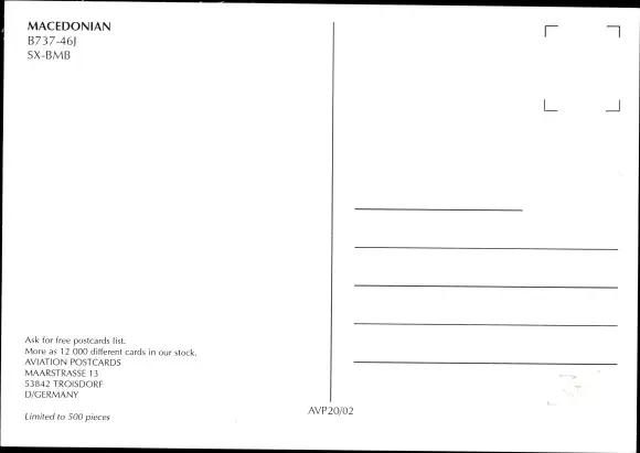 Ak Mazedonisches Passagierflugzeug, Macedonian, B737-46J