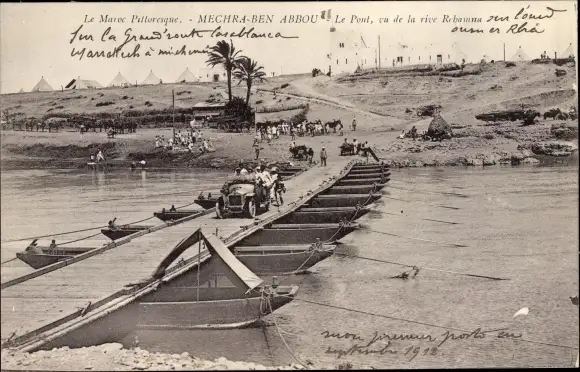 Ak Mechra-Ben Abbou Marokko, Le Pont, vu de la rive Rebamna