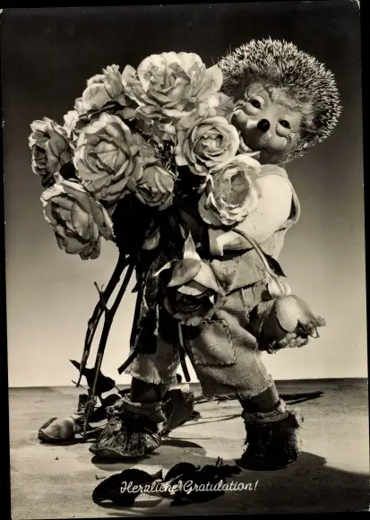 Ak Mecki der Igel, Blumenstrauß, Rosenstrauß, Glückwunsche