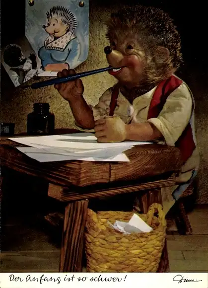 Ak Mecki der Igel, Der Anfang ist so schwer, Briefpapier, Schreibfeder