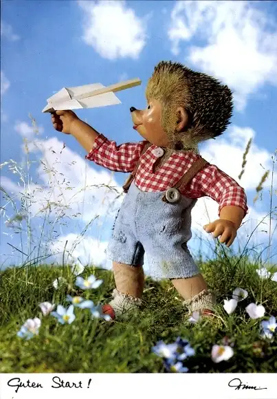 Ak Mecki der Igel, Guten Start, Igelkind, Papierflugzeug