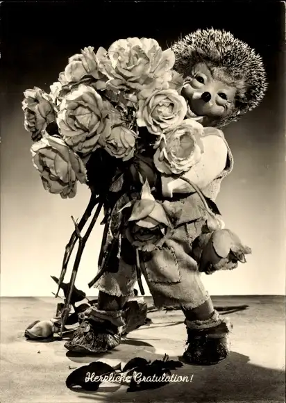 Ak Mecki der Igel, Herzliche Gratulation, Blumenstrauß, Rosen