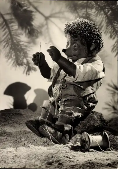 Ak Mecki der Igel, Strohwitwer, Beim Nadeleinfädeln, Faden