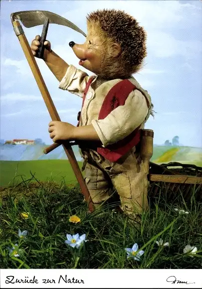 Ak Mecki der Igel, Zurück zur Natur, Sense