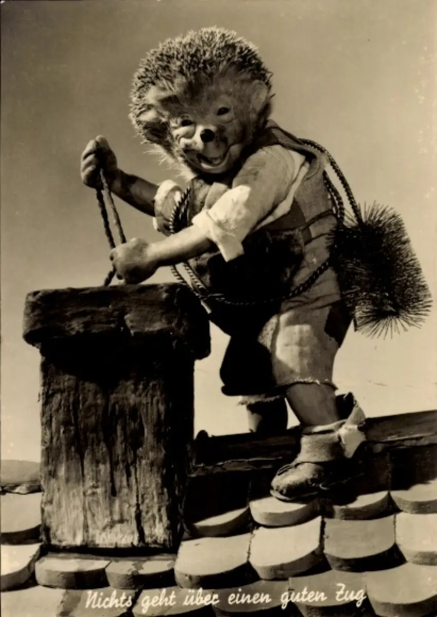 Ak Mecki der Igel als Schornsteinfeger, Nichts geht über einen guten Zug