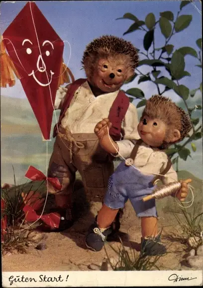 Ak Mecki der Igel beim Drachensteigen, Guten Start