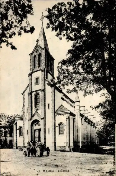 Ak Medea Algerien, Blick zur Kirche, Passanten