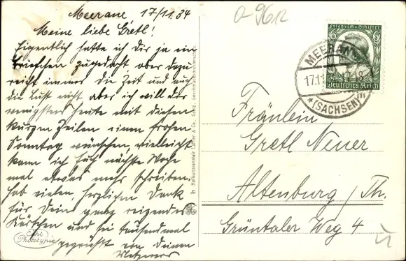 Zustand, siehe Scan, gelaufen, 1934 - ca 14 cm X 9 cm