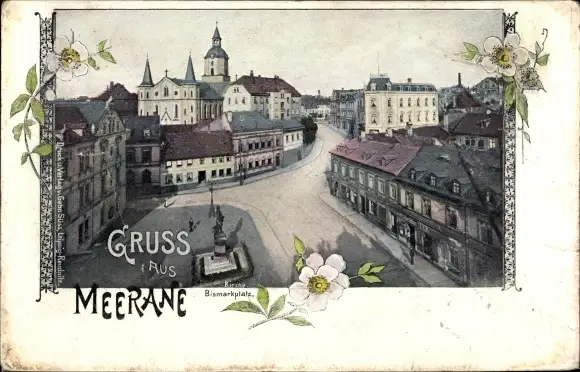 Ak Meerane in Sachsen, Bismarckplatz mit Kirche