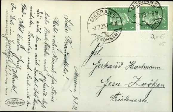 Zustand, siehe Scan, gelaufen, 1929 - ca 14 cm X 9 cm