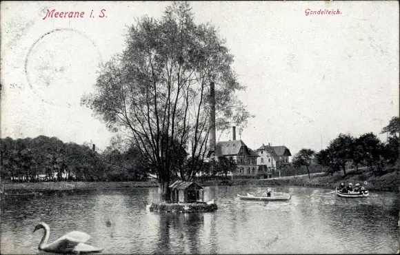 Ak Meerane in Sachsen, Gondelteich, Schwan