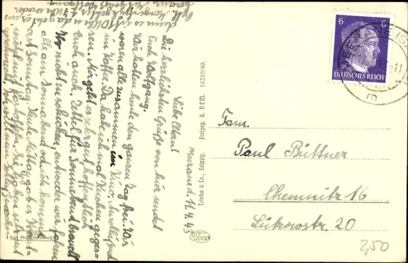 Zustand, siehe Scan, gelaufen, 1943 - ca 14 cm X 9 cm