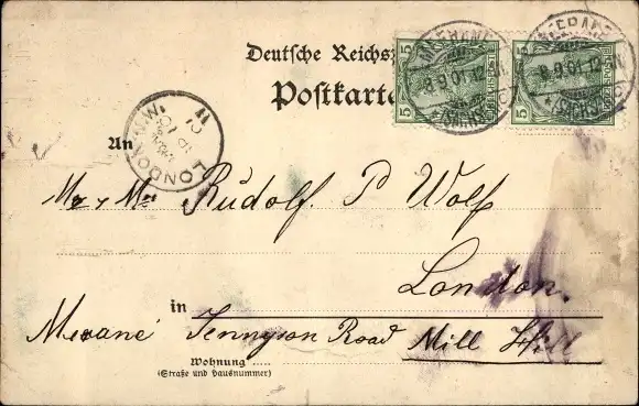 Zustand, siehe Scan, gelaufen, 1901 - ca 14 cm X 9 cm