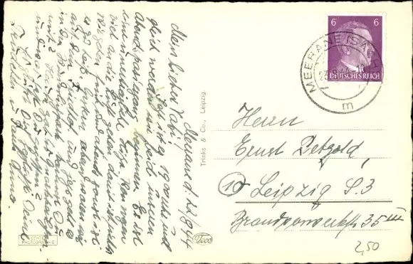 Zustand, siehe Scan, gelaufen, 1944 - ca 9 cm X 14 cm