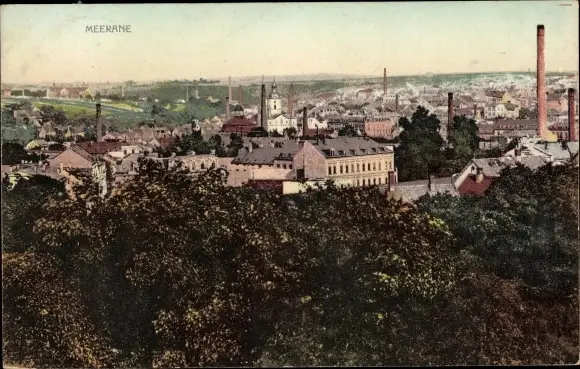 Ak Meerane in Sachsen, Totalansicht, Schornsteine