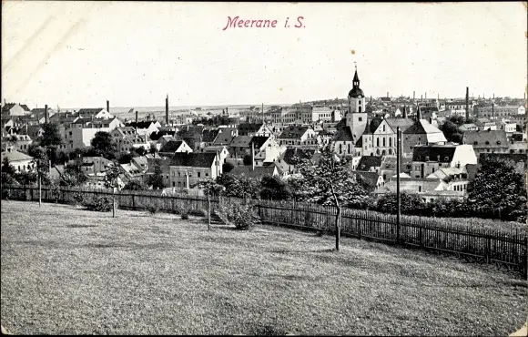 Ak Meerane in Sachsen, Totalansicht vom Ort, Holzzaun