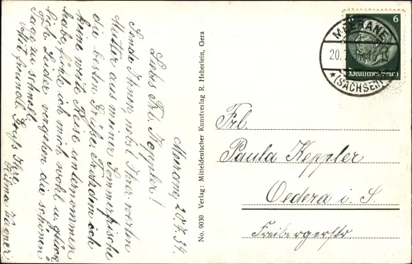 Zustand, siehe Scan, gelaufen, 1934 - ca 14 cm X 9 cm