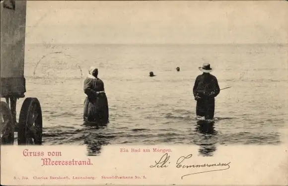Ak Meeresstrand, Ein Bad am Morgen, Badende Menschen
