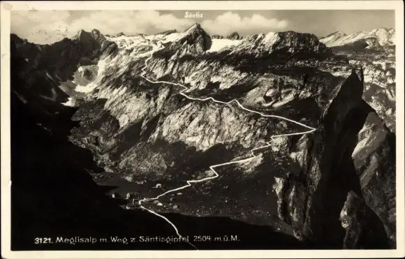 Ak Meglisalp Appenzell Innerrhoden Schweiz, Weg zum Säntisgipfel