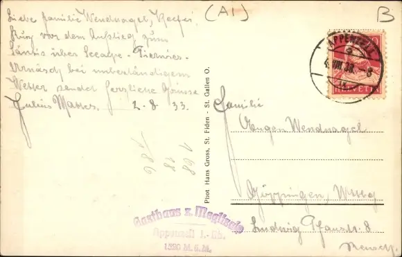 Zustand, siehe Scan, gelaufen, 1933 - ca 14 cm X 9 cm