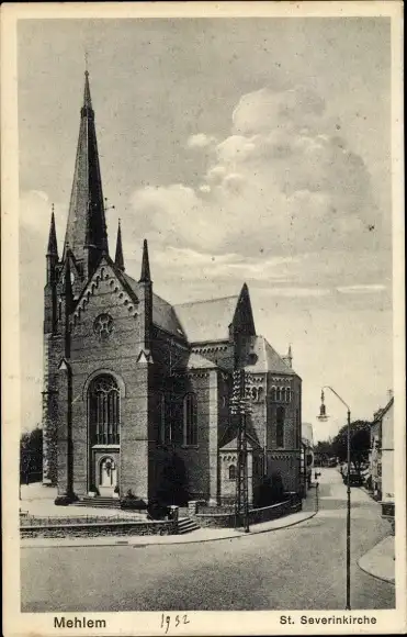 Ak Mehlem Bad Godesberg Bonn am Rhein, Straßenpartie, St. Severinkirche