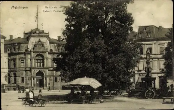 Ak Meiningen in Thüringen, Marktplatz, Postamt, Brunnen