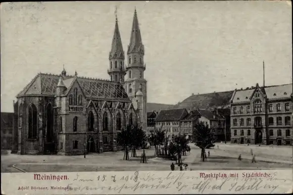 Ak Meiningen in Thüringen, Marktplatz, Stadtkirche