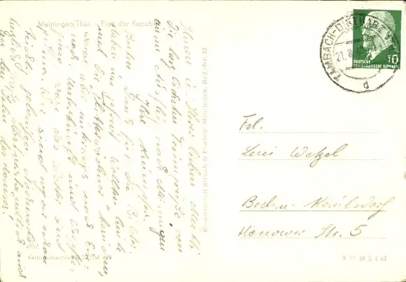 Ak Meiningen in Thüringen, Platz der Republik, Kirche