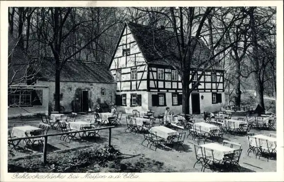 Ak Meißen Elbe, Terrassengarten der Rehbockschänke