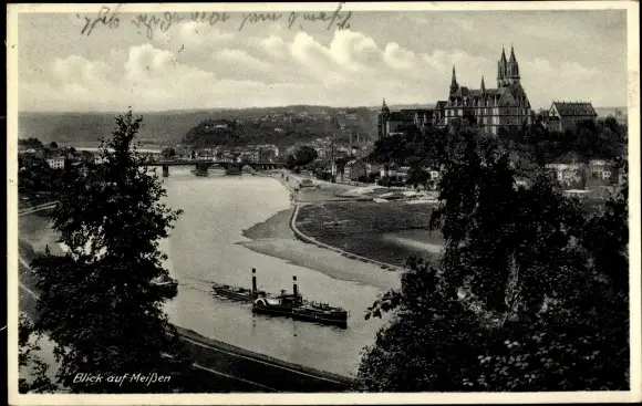 Ak Meißen an der Elbe, Blick auf den Ort, Elbdampfer
