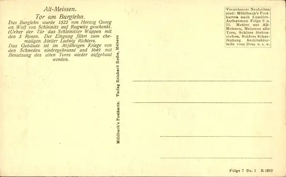 Ak Meißen an der Elbe, Burglehn, Tor